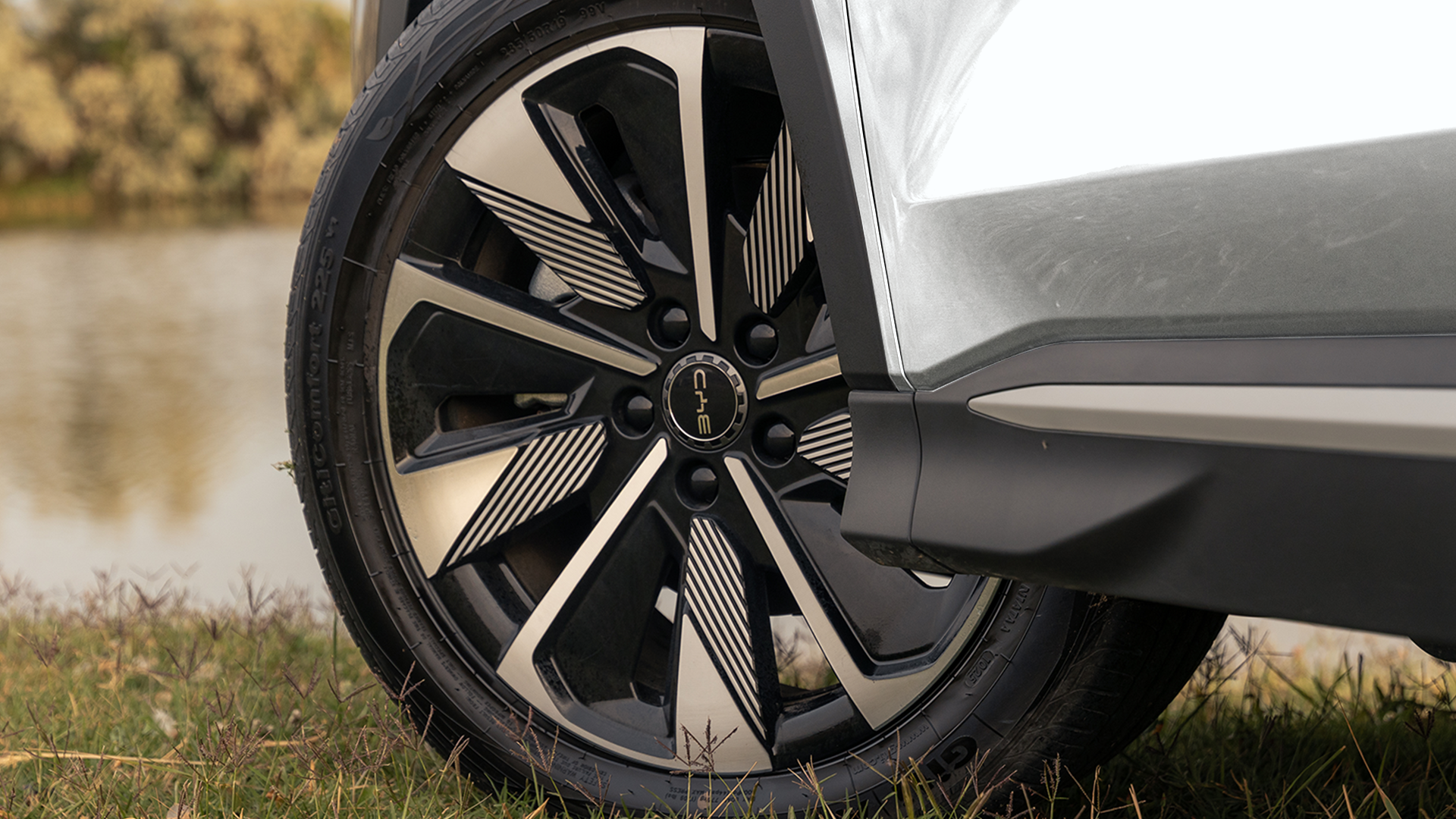 19-дюймовые алюминиевые диски сочетают элегантность и надежность. Их контрастные цвета добавляют стиль, а шины шириной 235 мм гарантируют стабильность и безопасность.